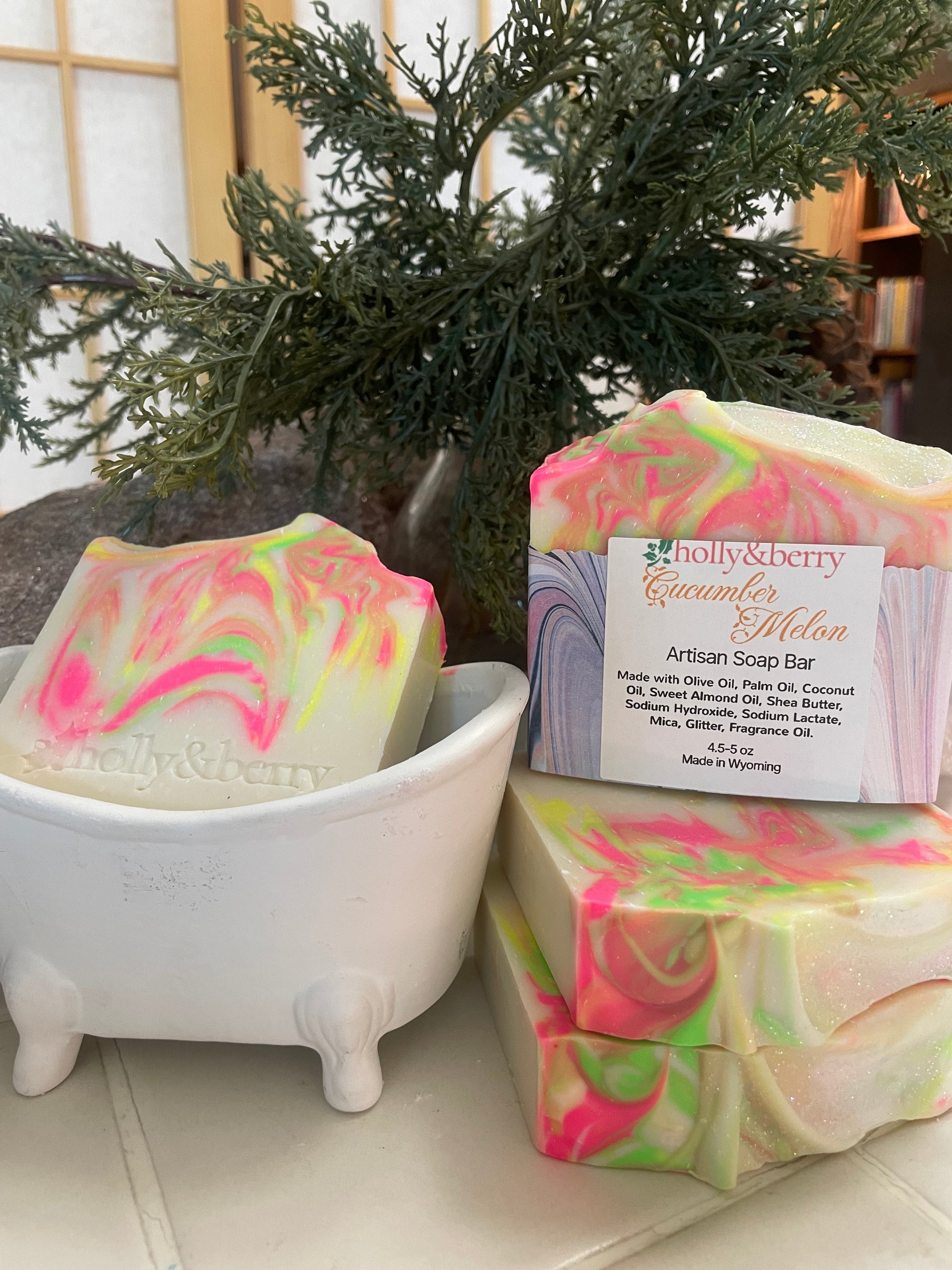 This bar is an all-time favorite scent of Cucumber Melon full of whimsical fun. A bar of deliciousness but I wouldn't recommend a taste test. Bars are approx. 5.6-5.7 oz bars.